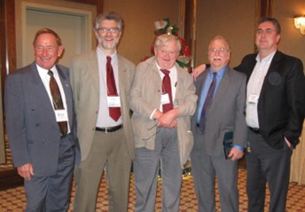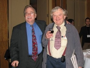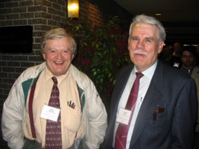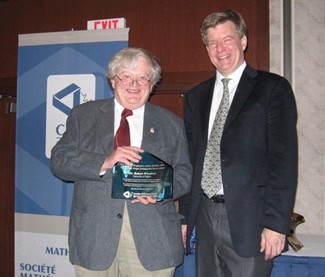 Robert Woodrow, en compagnie de l’ancien président de la SMC Jacques Hurtubise, reçoit le prix Graham Wright lors de la réunion d’hiver 2010 de la SMC (Vancouver, BC).